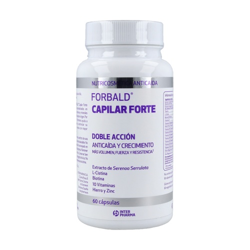 Forbald Capilar Forte je určen pro křehké vlasy jak mužů, tak žen. Poskytuje dvojí intenzivní účinek: dodává vlasům větší sílu a objem. Potravinový doplněk s vysokým obsahem vitamínů a minerálů, které posilují vlasy zevnitř i zvenku.