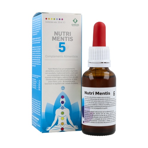 Nutri Mentis 5 je doplněk stravy na bázi rostlinných extraktů s eukalyptem, tradičně známým pro své balzamické vlastnosti a přínosy pro orofaryngeální sliznici a hlas, eleuterokokem, který je prospěšný pro udržení psycho-fyzického tónu, a esenciálním olejem z levandule, který podporuje rovnováhu nálady.