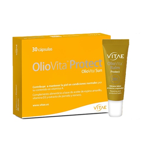 Oliovita Protect je doplněk stravy, který pomáhá chránit pokožku před slunečním zářením. Obsahuje exkluzivní 100% přírodní extrakty, mezi které patří extrakt z grepů a rozmarýnu, olej z rakytníku a vitamín D, s hydratačními a antioxidačními vlastnostmi.