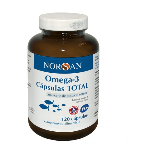 Omega 3 kapsle total od Norsan je výživový doplněk s nenasycenými mastnými kyselinami (mono a polynenasycenými) a vitamínem E. Obsahuje přírodní rybí olej s vysokou dávkou, ale nekoncentrovaný, z divokého původu.
