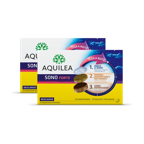 Balíček Aquilea Sono Forte je doplněk stravy, který je prezentován ve formě inovativní trojvrstvé tablety, navržené tak, aby pomáhal navodit a udržet kvalitní spánek po celou noc.