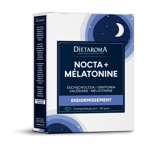 Citran vápenatý; extrakt z nadzemních částí eschscholtzia* (Eschscholtzia californica), extrakt ze semen griffonie* (Griffonia simplicifolia), extrakt z kořene kozlíku lékařského* (Valeriana officinalis), dehydrátový rýžový sirup*, protispékavé látky: uhličitan hořečnatý, mastenec, slunečnicový olej*, melatonin.