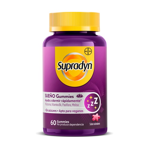 Supradyn® Sueño Gummies je doplněk stravy, který obsahuje melatonin, vitamín B6 a kombinaci přírodních extraktů z meduňky a mučenky, které vám pomáhají usnout.