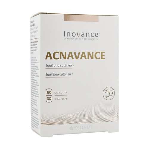 Acnavance Inovance je potravinový doplněk, který byl vyroben na bázi rostlinných extraktů, zinku, selenu, vitamínu B5 a mléčných bakterií.