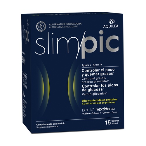 Aquilea Slimpic je doplněk stravy, který přispívá ke kontrole tělesné hmotnosti a redukci tuku díky koleu a pomáhá kontrolovat výkyvy cukru díky chromu, který přispívá k udržení normální hladiny glukózy v krvi.