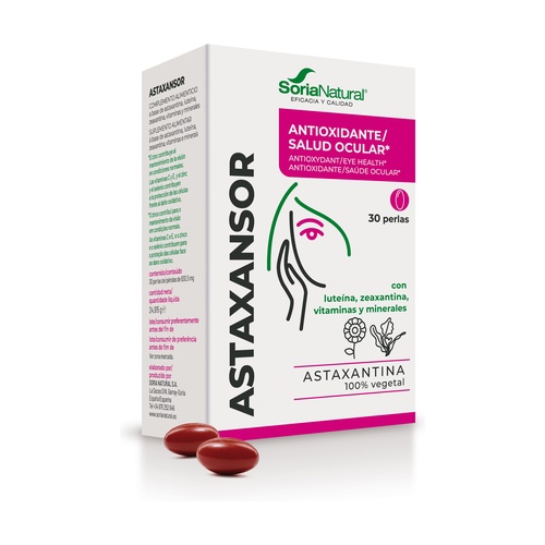 Astaxansor - Oční ochrana s astaxantinem od Soria Natural je inovativní produkt rostlinného původu s účinným antioxidačním účinkem, jehož cílem je vybavit organismus jedním z nejúčinnějších ochranných systémů k osvobození buněk od útoků volných radikálů (VR) zevnitř.
