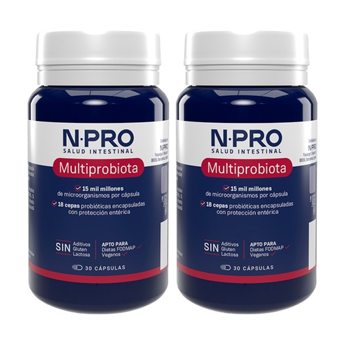 NPro Multiprobiota od NPro je doplněk stravy, který obsahuje 18 mikrobiálních kmenů a 15 000 milionů CFU na kapsli. Probiotika nejnovější generace s enterickou ochranou a pomalým uvolňováním pomocí systému DR caps. Neobsahuje sacharidy ani prebiotická vlákna, která by mohla způsobovat intolerance a střevní nepohodlí.