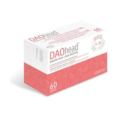 Diaminoxidáza (DAO) z DAOhead doplňuje vlastní enzym organismu, který je zodpovědný za metabolizaci histaminu. Užíváním jedné kapsle DAOhead před každým jídlem se zvyšuje množství DAO ve tenkém střevě a tím i schopnost rozkládat histamin. Tím se urychluje zpracování histaminu přítomného v potravě, který je spouštěčem příznaků.