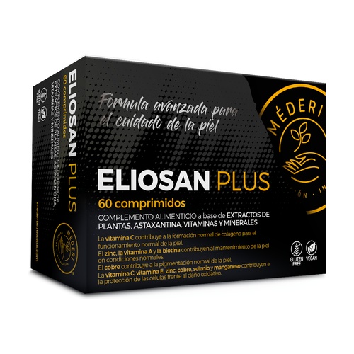 Eliosan plus de Méderi je doplněk stravy založený na rostlinných extraktech, astaxantinu, vitamínech a minerálech.