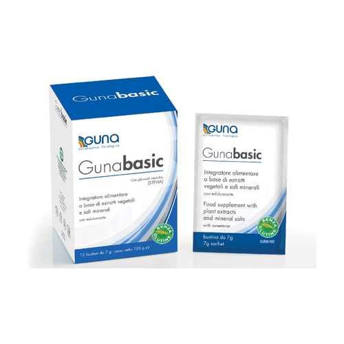 Guna-Basic od Guna obsahuje výběr složek, včetně minerálních solí, betakarotenu a rostlinných extraktů, známých svými alkalizujícími, odvodňujícími a remineralizačními vlastnostmi.