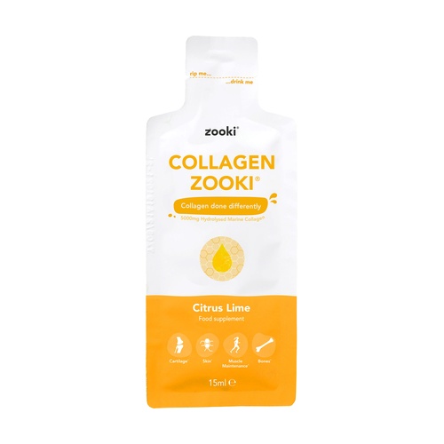 Colágeno Zooki je ochucen přírodními extrakty z limetky a lze jej užívat přímo ze sáčku nebo smíchat s vodou, smoothie, jogurtem, kaší, granolou a dalšími pokrmy.