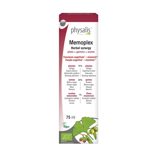 Physalis Memoplex bio obsahuje asijskou vodní rostlinu a černý topol, které podporují kognitivní funkce. Ginkgo biloba napomáhá prokrvení mozku, paměti a koncentraci.