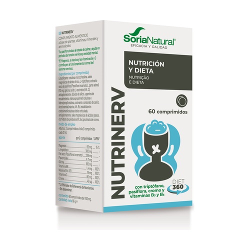 Nutrinerv je vyroben z kombinace tryptofanu, hořčíku, vitamínů C, B6, B3, suchého extraktu z mučenky, který zlepšuje činnost mozku a pomáhá v obdobích únavy.