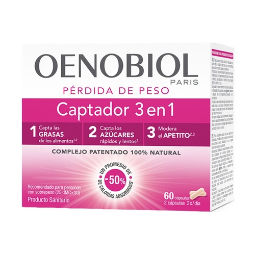 Oenobiol Captador 3 en 1 + je zachytávač tuků a cukrů a aktivátor střevní mikrobioty pro intenzivnější hubnutí.
