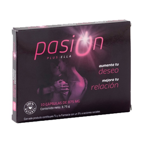 Je to potravinový doplněk vyrobený na bázi afrodiziakálních rostlin a minerálů, který díky obsahu ženšenu, tribulu a damiany má hlavní funkci PASIÓN PLUS ELLA v optimální údržbě intimních vztahů a zlepšení libida. Zvýšením průtoku krve do genitální oblasti se podporuje a udržuje lubrikace. Navíc Pasión Plus Ella přispívá k fyzické a duševní pohodě a ke zvýšení vitality a nálady.