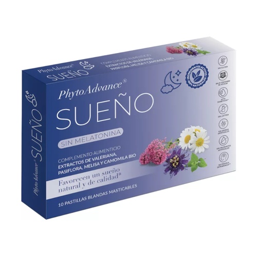 Sueño apoyo para un buen descanso de Phytoadvance je doplněk stravy s extrakty z kozlíku lékařského, mučenky, meduňky a heřmánku, který pomáhá usnout a dosáhnout regeneračního odpočinku.