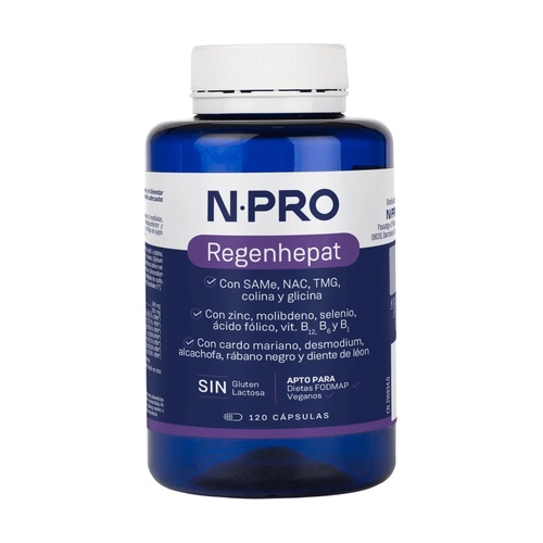 Regenhepat od NPro je doplněk stravy formulovaný na základě synergického spojení aminokyselin, rostlinných extraktů, stopových prvků, methylovaných vitamínů a živin, zaměřených na obnovu funkce jater, když jsou ovlivněna oxidačním stresem, zvýšenou propustností, střevní dysbiózou, viry nebo vysokými hladinami endogenních a exogenních toxinů.