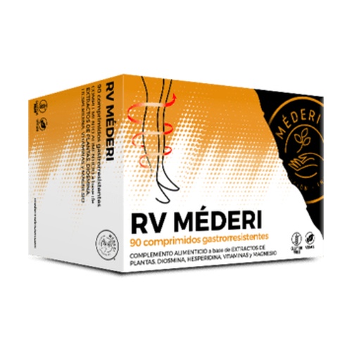 RV Méderi je doplněk stravy na bázi rostlinných extraktů, diosminu, hesperidinu, vitamínů a hořčíku.
