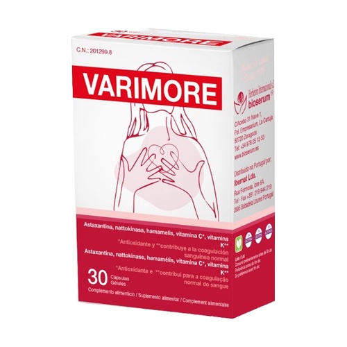 Varimore de Bioserum je doplněk stravy formulovaný kombinací přírodních aktivních látek a vitamínů B3, B2, B1, vitamínu C s antioxidační aktivitou a vitamínu K, který přispívá k normální krevní srážlivosti.