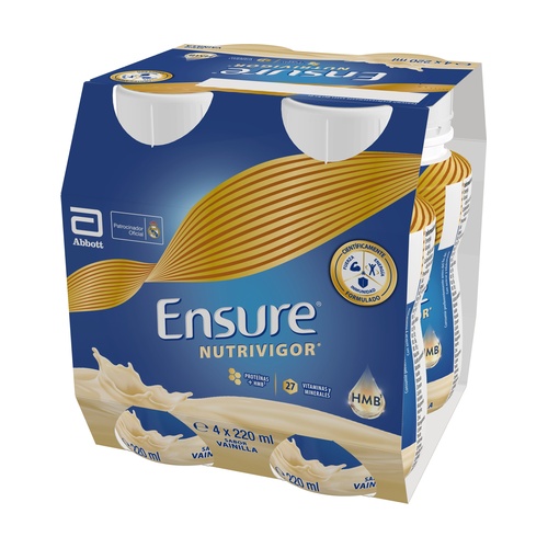 Ensure® Nutrivigor tekutý vanilková příchuť je doplněk stravy pro dospělé připravený k okamžité spotřebě, který obsahuje HMB, vysoce kvalitní bílkoviny a 27 vitamínů a minerálů. Díky obsahu bílkovin pomáhá zvyšovat svalovou hmotu a vitamín D a vápník přispívají k jejich normální funkci. Dále vitamíny B2, B6 a B12 přispívají k udržení energie a vitamín C pomáhá imunitnímu systému.