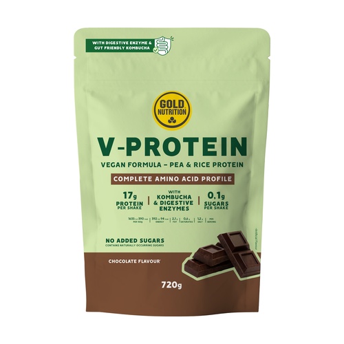 Směs bílkovin Vegan V-Protein GoldNutrition® využívá izolovanou hrachovou bílkovinu, která snižuje hrachovou pachuť v produktu a výrazně zlepšuje texturu a chuť. S přirozeně lahodnou chutí může být Vegan V-Protein GoldNutrition® používán jako doplněk nebo náhrada příjmu bílkovin v dietách s vyšší potřebou bílkovin a ve vegetariánských a veganských dietách, pomáhá udržovat svalovou hmotu a kostní hmotu. Může být také konzumován pro vyrovnání pH těla díky svému zásaditému potenciálu. Rostlinná bílkovina je udržitelnější volbou, protože produkce potravin rostlinného původu má menší dopad na životní prostředí a nižší náklady.