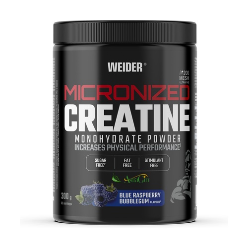 Mecronized creatine je doplněk s příchutí modrého rybízu, formulovaný pro fyzickou aktivitu.