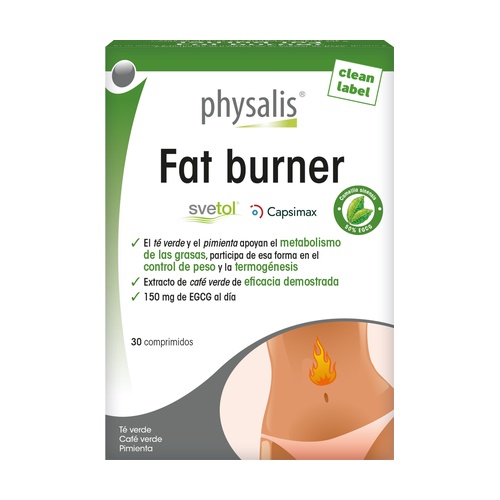Fat Burner Bio de Physalis je 100% biologická směs, která mimo jiné obsahuje extrakt ze zeleného čaje, který podporuje metabolismus tuků a tím se podílí na kontrole hmotnosti. Obsahuje také extrakt ze zelených kávových zrn (Svetol®) s minimálním obsahem 40 % kyseliny chlorogenové a 10 až 15 % kyseliny 5-kafeolchinové.