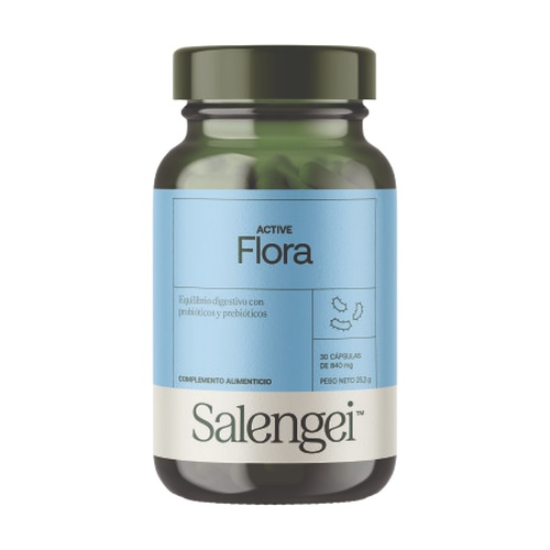 Active Flora od Salengei je určen k léčbě gastrointestinálních poruch díky svému složení z bakteriálních kmenů s vysokou přežitelností v gastrointestinálním traktu, vlákniny, saccharomyces boulardii a aloe vera.