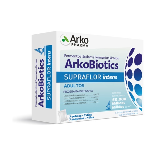 ArkoBiotics Supraflor (intens) od Arkopharma je potravinový doplněk na bázi mléčných kultur. Kombinuje 6 kmenů mléčných kultur pečlivě vybraných Institutem Rosell-Lallemand