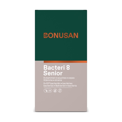 Bacteri 8 Senior od Bonusan nabízí vyváženou směs 8 bakteriálních kmenů speciálně formulovanou pro starší osoby. Víme, že s přibývajícím věkem se množství a rozmanitost bakterií v mikrobiomu snižuje.