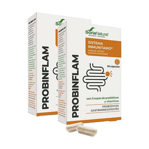 Probinflam od Soria Natural je doplněk stravy, který pomáhá udržovat rovnováhu trávicího systému. Obsahuje Bifidobacterium longum ES1 registrovaný a patentovaný bakteriální kmen, probiotikum doporučované pro střeva, zejména pro osoby s trávicími problémy souvisejícími s glutenem.