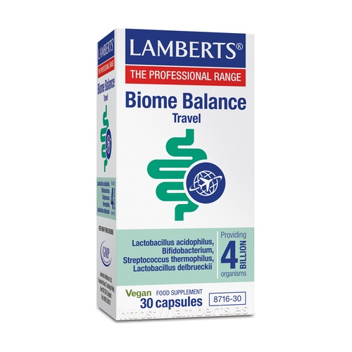 Biome Balance Travel (Cesty) od Lamberts obsahuje 4 pečlivě vybrané kmeny živých prospěšných bakterií: Lactobacillus acidophilus, Bifidobacterium bifidus, Streptococcus thermophilus a Lactobacillus delbrueckii, které byly široce používány v klinických studiích.