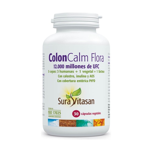 Arabinogalaktany získané z modřínového stromu a kořene čekanky, zdroj fruktooligosacharidů, pomáhají udržovat zdraví střev. Bifidobakterie a laktobacily jsou součástí přirozené střevní mikroflóry. Každá kapsle Colon Calm Flora od Sura Vitasan obsahuje enterickou potahovou vrstvu PH5D, která chrání produkt před žaludečními šťávami a zajišťuje 100% účinnost.