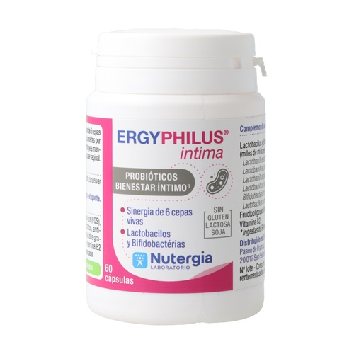 Ergyphilus Intima od Nutergia je doplněk stravy založený na 6 kmenech laktobacilů a bifidobakterií schopných oživení, dávkovaných na 8 miliard na kapsli.