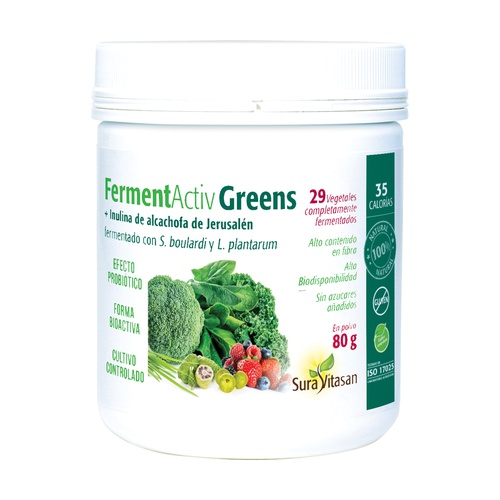 Ferment Activ Greens od Sura Vitasan je produkt založený na 29 zcela fermentovaných zeleninách a superpotravinách s inulinem pocházejícím z jeruzalémského artyčoku pro zdraví střev.