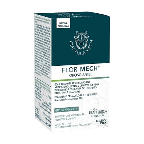 Flor-Mech® orosolubilní od Gianluca Mech je formulace navržená pro dietní programy kontroly hmotnosti díky přítomnosti probiotika Lactobacillus rhamnosus SP1, určeného pro rovnováhu střevní mikroflóry a metabolickou pohodu. Naopak nopál je známý svými antidiaroickými a hypoglykemickými vlastnostmi v synergii s prebiotickým účinkem fruktooligosacharidů (FOS).