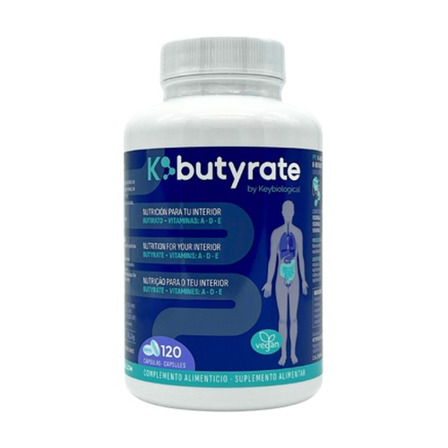 K-Butyrate od Keybiological je doplněk stravy vyrobený z butyrátu a vitaminů A, D a E. Neobsahuje složky živočišného původu, laktózu ani jiné alergeny. Vitamin A, složka K-Butyrate, přispívá k udržení sliznice střev za normálních podmínek.