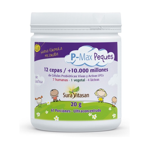 Probio Max peques od Suravitasan je ultrakoncentrovaná a pokročilá formule 12 vybraných bakteriálních kmenů, F.O.S (čekanka) a A.O.S (modřín) pro podporu rovnováhy střevní mikroflóry nejmenších.