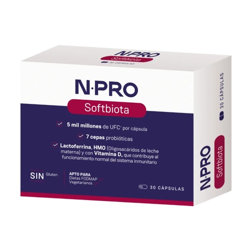 Softbiota od NPro je probiotikum s nízkou zátěží, které obsahuje 7 mezinárodně uznávaných bakteriálních kmenů, HMO (oligosacharidy lidského mléka), laktoferrin a vitamín D.
