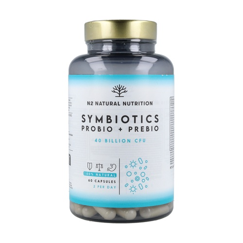 Symbiotics probio+prebio od N2 Nutrition je symbiotický doplněk stravy s prebiotiky pro podporu fungování trávicího a imunitního systému, usnadňující vstřebávání živin.