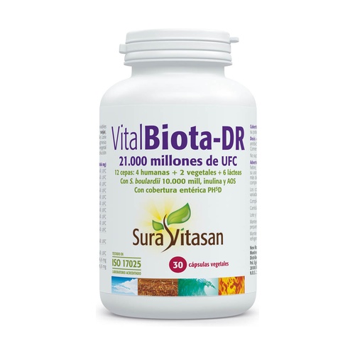 VitalBiota-DR od Sura Vitasan je silná a pokročilá kombinace 11 bakteriálních kmenů vybraných + S. boulardii, F.O.S (čekanka) a A.O.S (modřín).