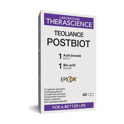 Teoliance postbiot je inovativní kombinace postbiotika a metabolitu mikrobioty, která má synergické spojení 2 bioaktivních látek: patentovaného postbiotika EpiCor a butyrátu (metabolit mikrobioty);