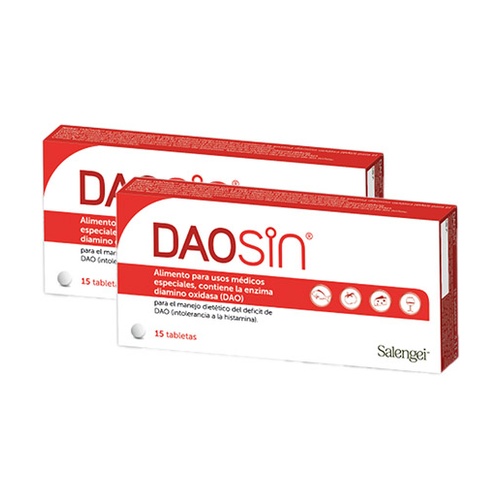 Daosin je doplněk stravy pro speciální lékařské použití, který obsahuje enzym diamino oxidázu (DAO) pro dietní řízení deficitu DAO (intolerance histaminu). Diamino oxidáza (DAO) rozkládá histamin přijatý s potravou ve střevě.