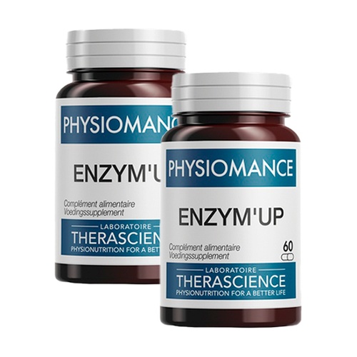 Enzym'up od Therascience je komplex trávicích enzymů, který usnadňuje trávení sacharidů, lipidů a bílkovin. Také zlepšuje trávení laktózy a vlákniny, čímž zabraňuje pocitu těžkosti a umožňuje správné trávení a vstřebávání živin.