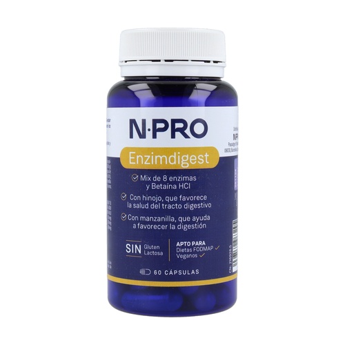 NPro Enzimdigest od NPro je doplněk stravy formulovaný s enzymy rostlinného a fermentačního původu, které podporují správné vstřebávání sacharidů, tuků a bílkovin. Navíc obsahuje přírodní betain HCl, který pomáhá při vstřebávání vitamínů a minerálů a podporuje správné pH žaludku a střev pro lepší trávení.