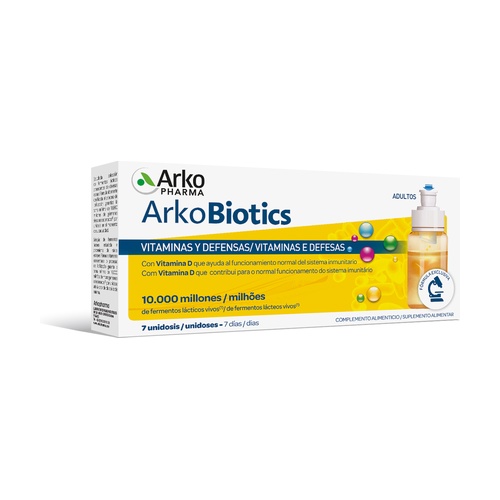 Arkobiotics Vitaminas y Defensas Adultos je doplněk stravy na bázi 5 živých mléčných kultur, 11 vitamínů a zinku pro stimulaci obranyschopnosti, dodání extra vitality a lepší zvládnutí probíhajících chřipek nebo nachlazení, únavy, snížené obranyschopnosti nebo změn ročních období.