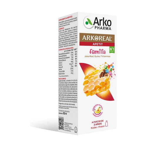 Arkoreal Apetit Junior sirup od Arkopharma je doplněk stravy s mateří kašičkou, který pomáhá stimulovat chuť k jídlu pro celou rodinu díky chinovníku.