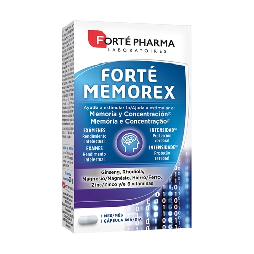 Zapamatování je komplexní a citlivý proces s rušivými vlivy: fyzická únava, stres, nadměrná duševní práce... V období stresu nebo učení Forté Memorex kombinuje ženšen, rhodiolu a komplex hořčíku, železa, zinku a 6 vitaminů, které přispívají k normální funkci nervového systému a normální kognitivní funkci(1,2)