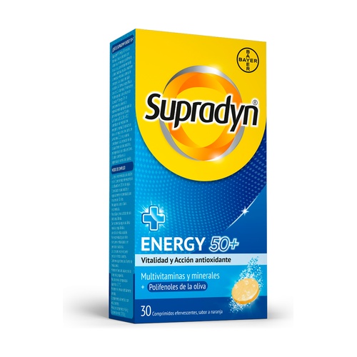 Supradyn® Energy 50+ šumivé tablety díky kombinaci vitamínů, minerálů a polyfenolů z olivovníku pomáhají udržovat energii a navíc chrání vaše buňky před oxidačním poškozením.