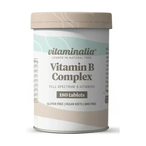 Vitamin B Complex od Vitaminalia je doplněk stravy ve formě tablet založený na vitamínech skupiny B. Obsahuje 8 vodou rozpustných vitaminů skupiny B ve vysokých koncentracích a pohodlných tabletkách malých rozměrů.